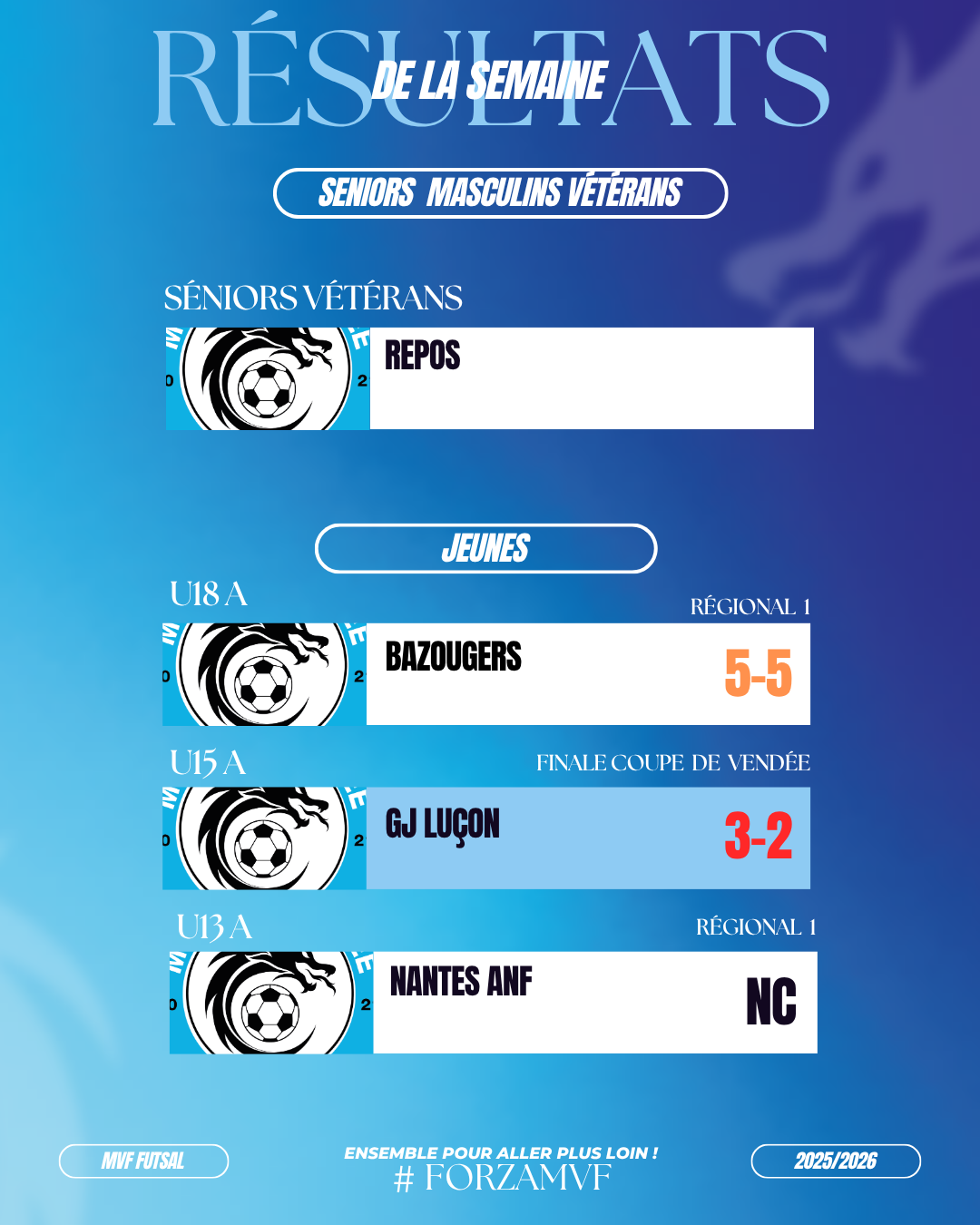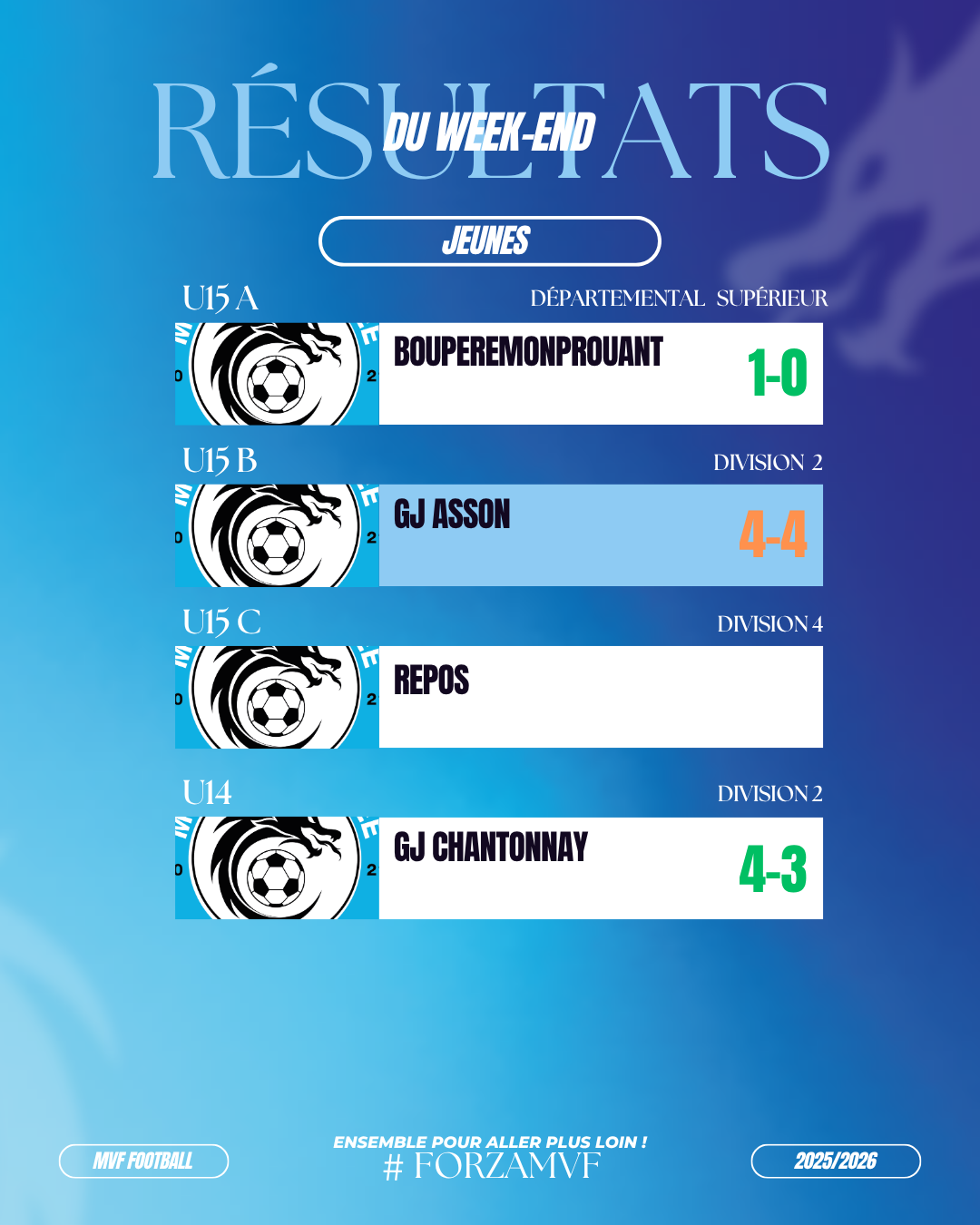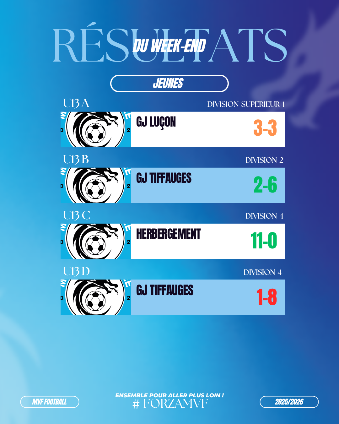 FOOTBALL : QUALIFICATION ÉGALEMENT DE NOTRE ÉQUIPE U14 EN FINALE DU CHALLENGE DE VENDÉE U15 ! Un beau dimanche pour le mvf !