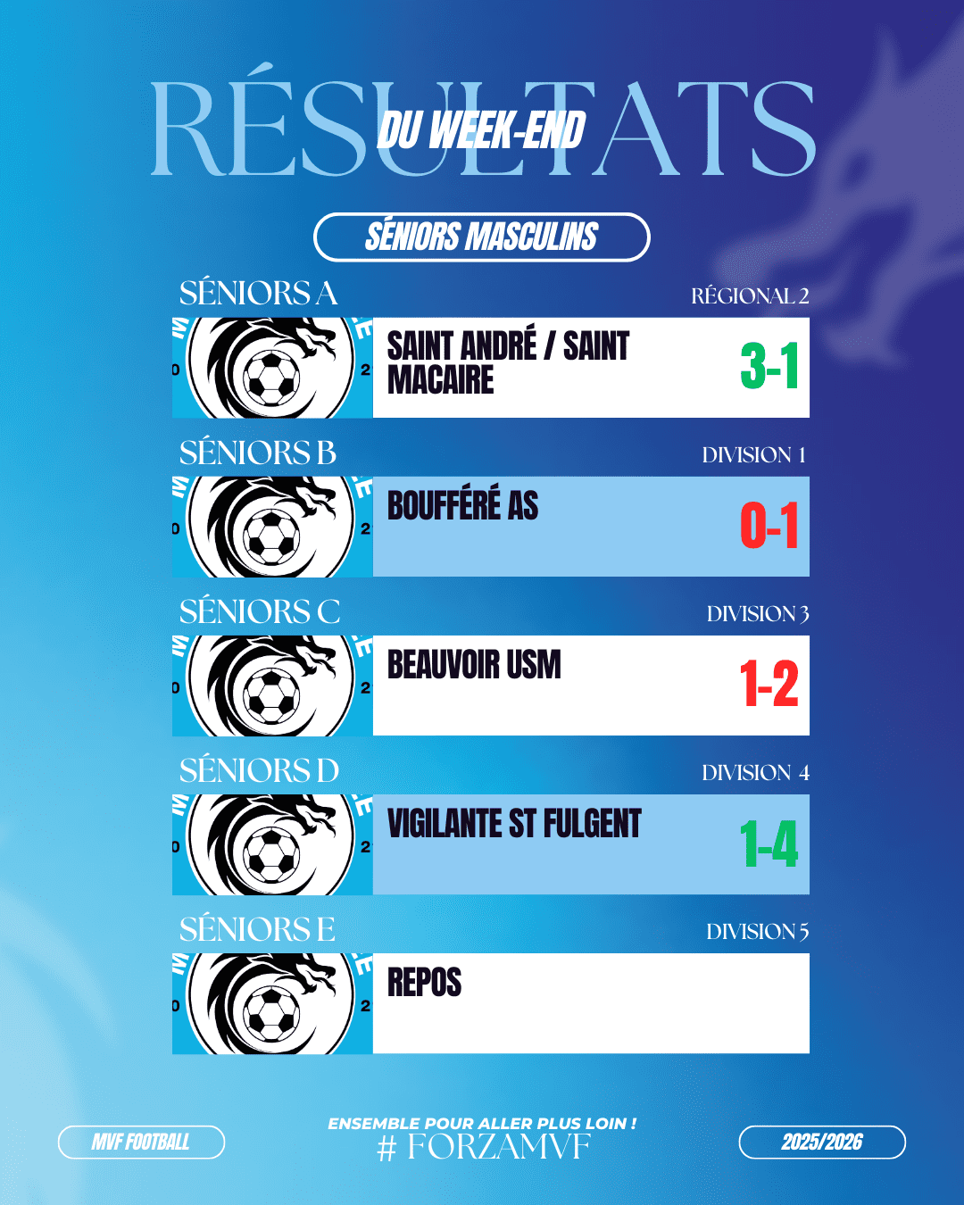 FOOTBALL : RÉSULTATS SÉNIORS !