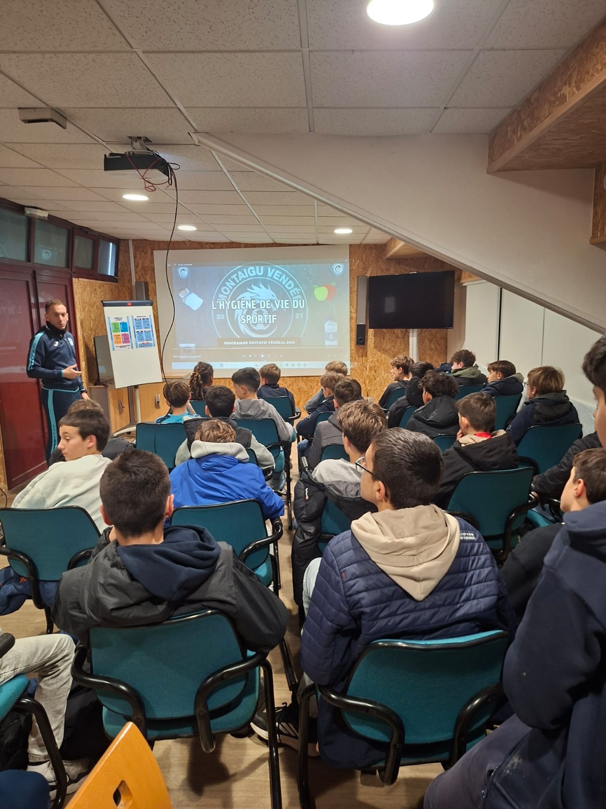 À travers un quiz puis un débat, les jeunes ont pu apprendre, partager leurs connaissances et poser leurs questions. Les éducateurs leur ont ensuite présenté la fiche « HYGIÈNE DU SPORTIF », un support créé par les éducateurs du club, et ont pris le temps de répondre à toutes les interrogations. Pour compléter ce temps d’échange, plusieurs vidéos d’experts sur chacune des thématiques ont été diffusées.