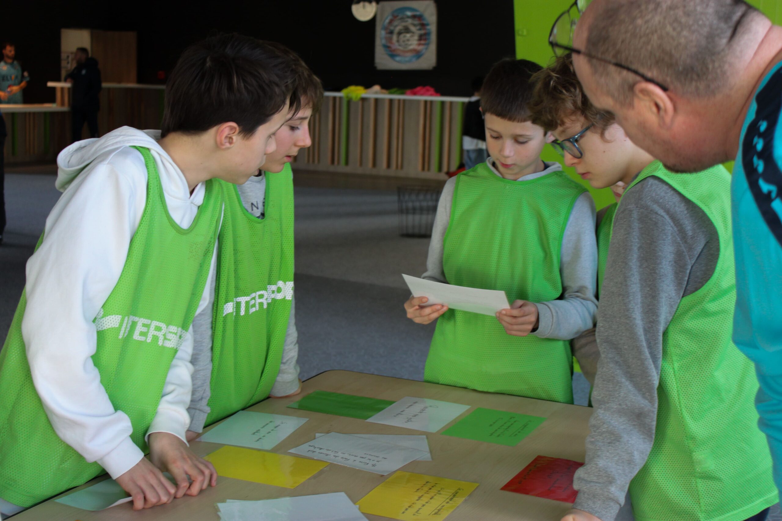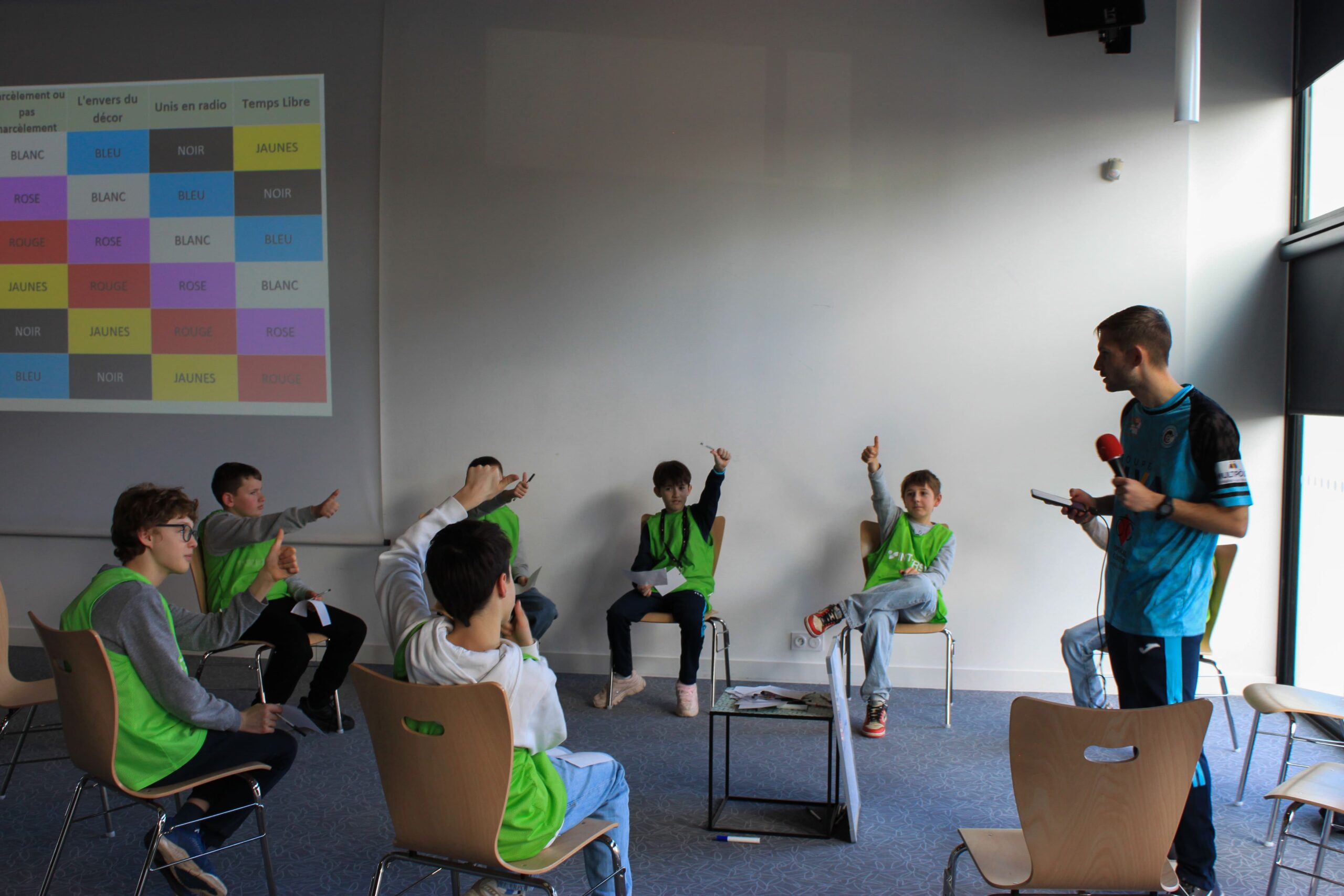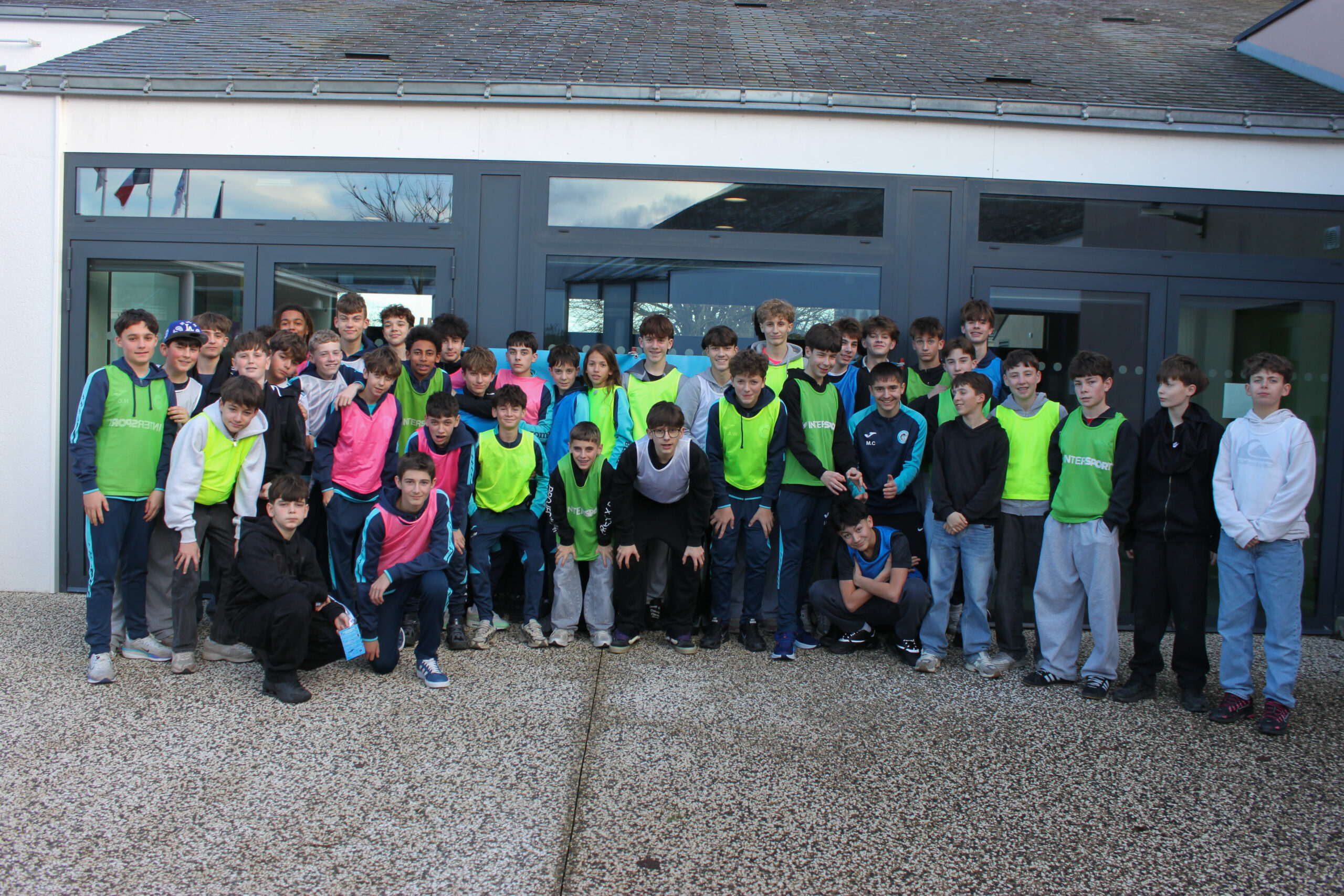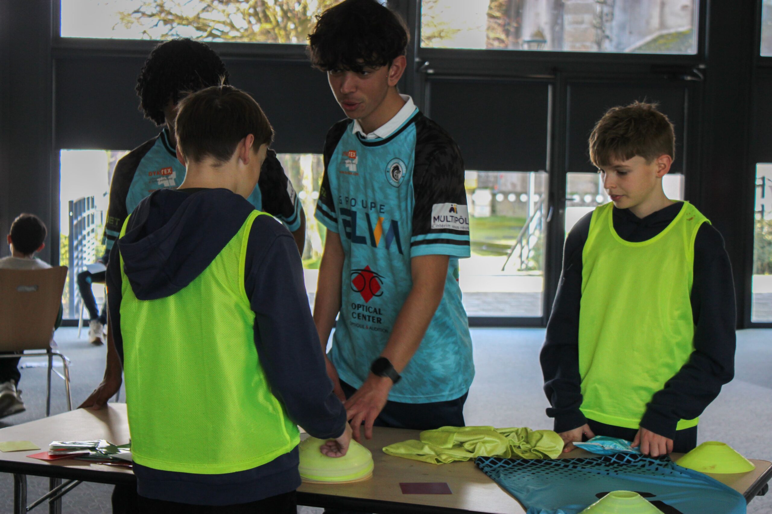 Afin de favoriser le mélange, la cohésion et l’inclusion, les jeunes ont tiré au sort une chasuble de couleur, formant ainsi des équipes aléatoires et intercatégories.