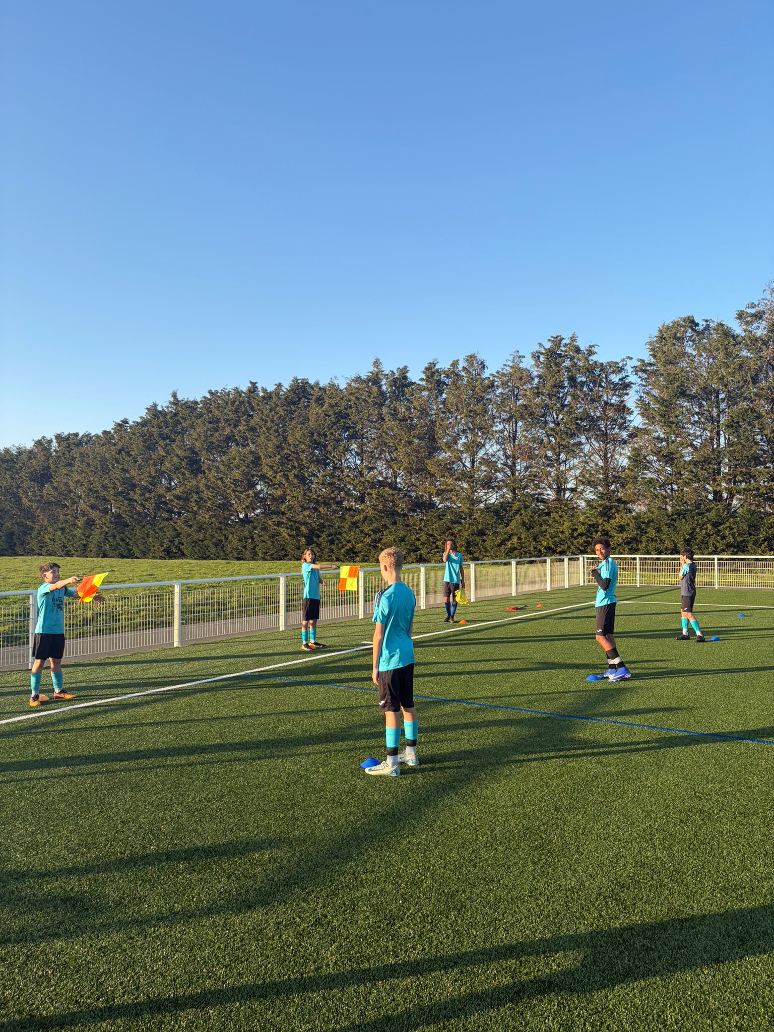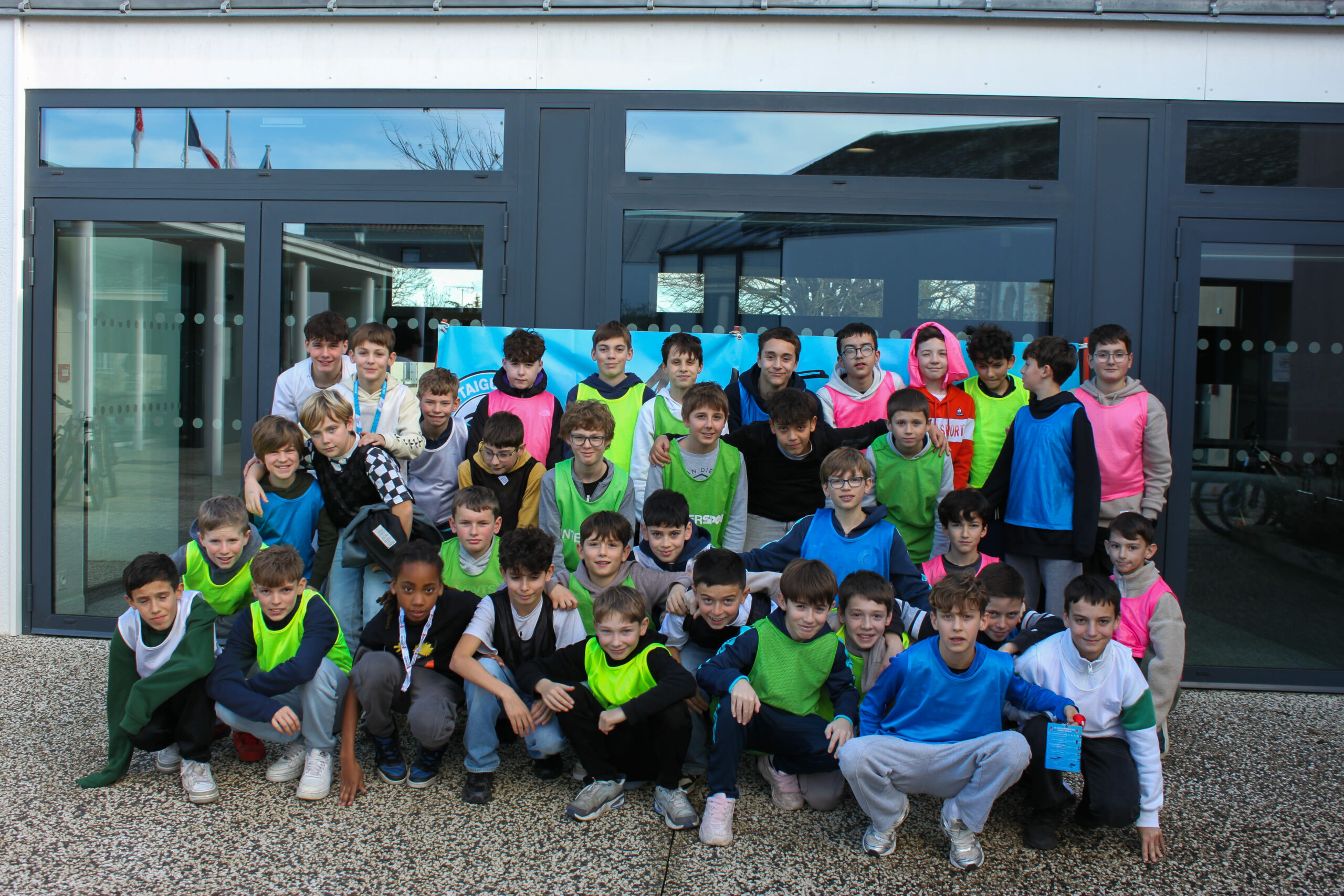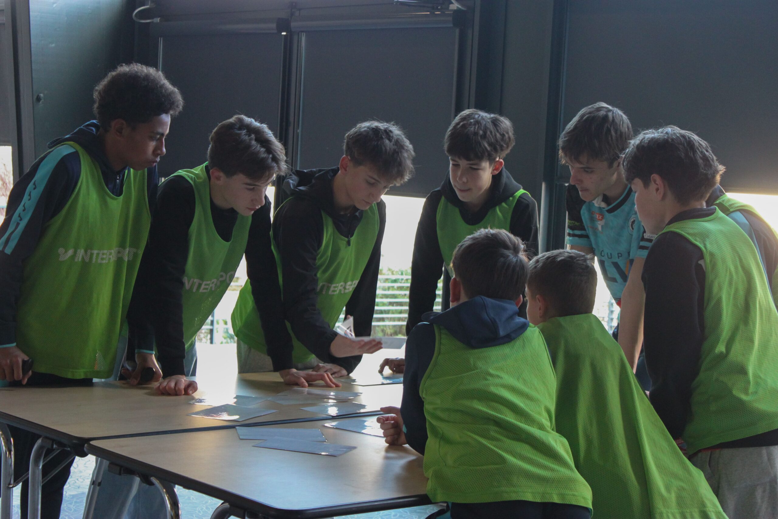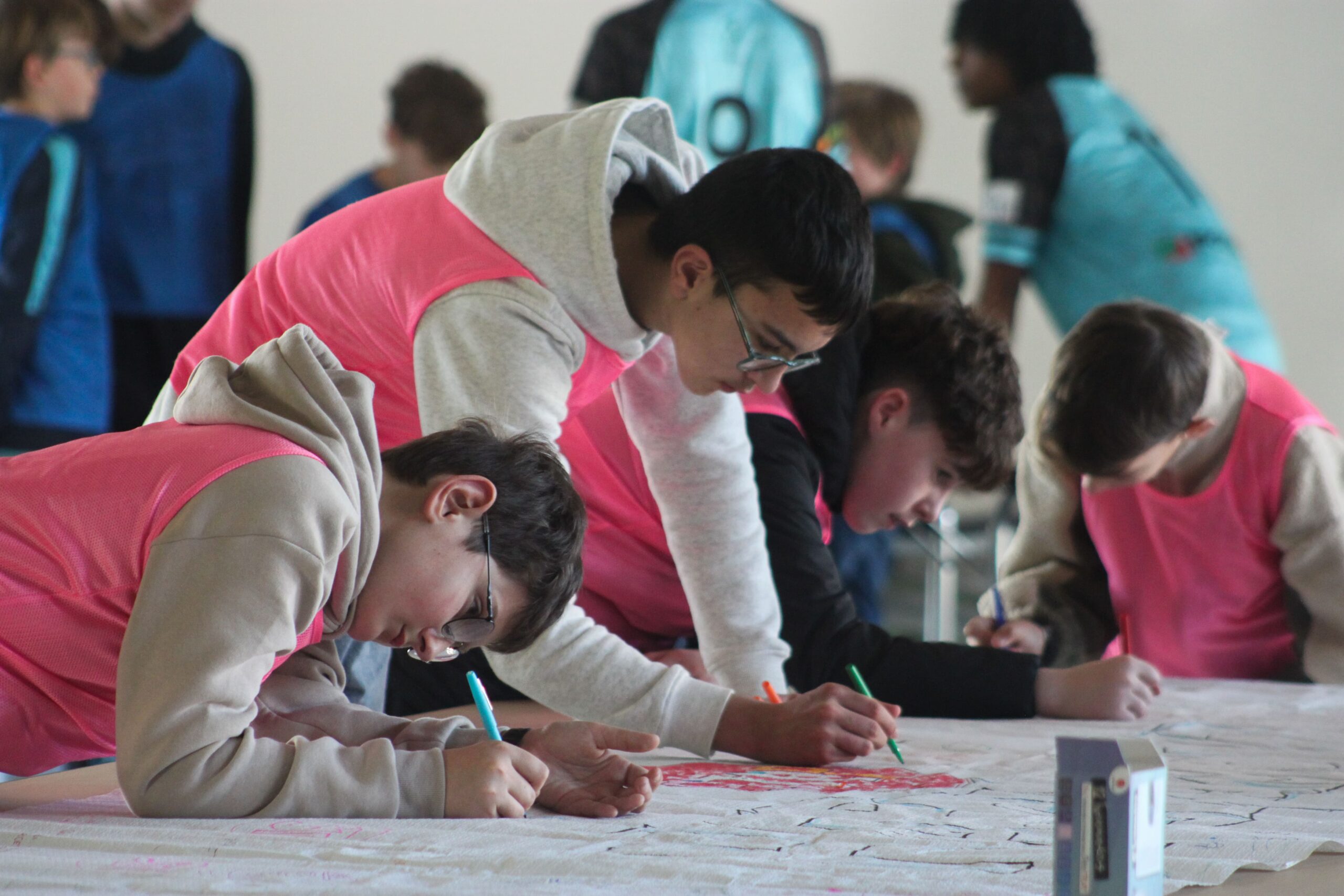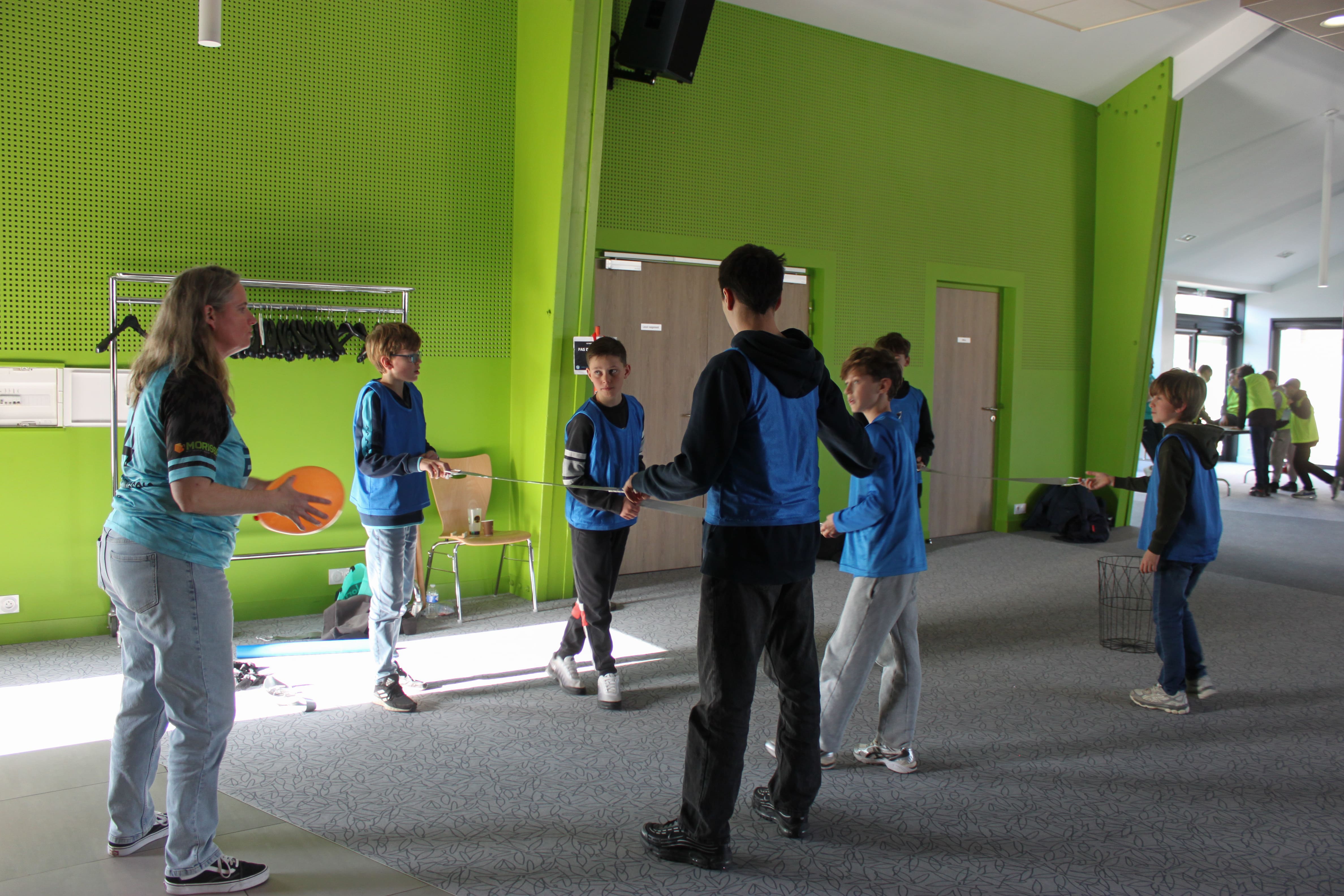 Afin de favoriser le mélange, la cohésion et l’inclusion, les jeunes ont tiré au sort une chasuble de couleur, formant ainsi des équipes aléatoires et intercatégories.